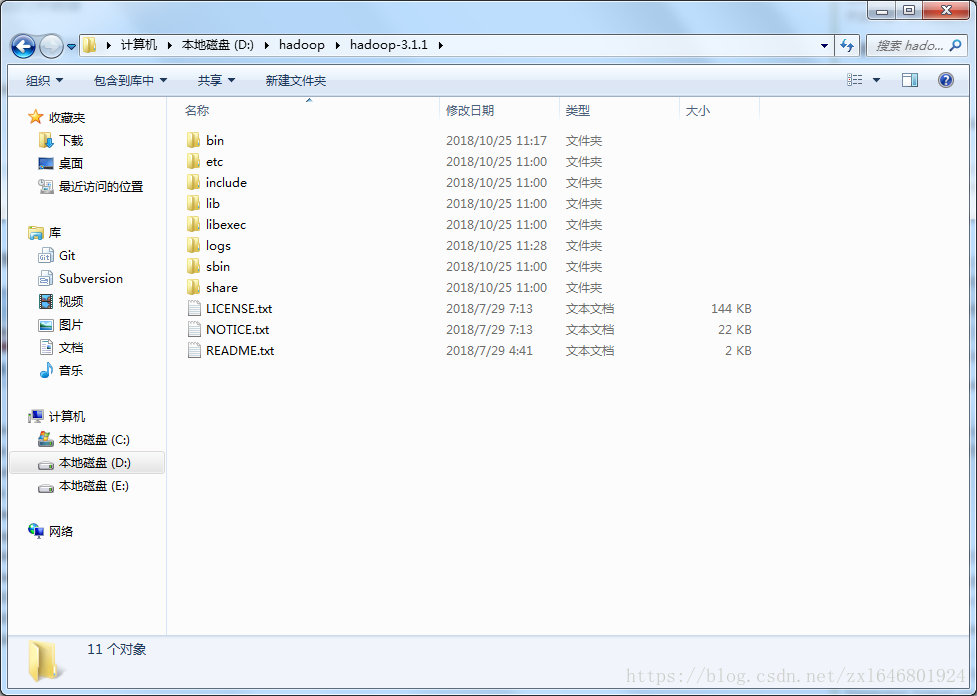 - 因为下载的 Hadoop 文件尚未安装, 我们只需要切断 D:hadoophadoop-3. 1 的可解压缩目录 D: hanoophadoop-3. 1 。