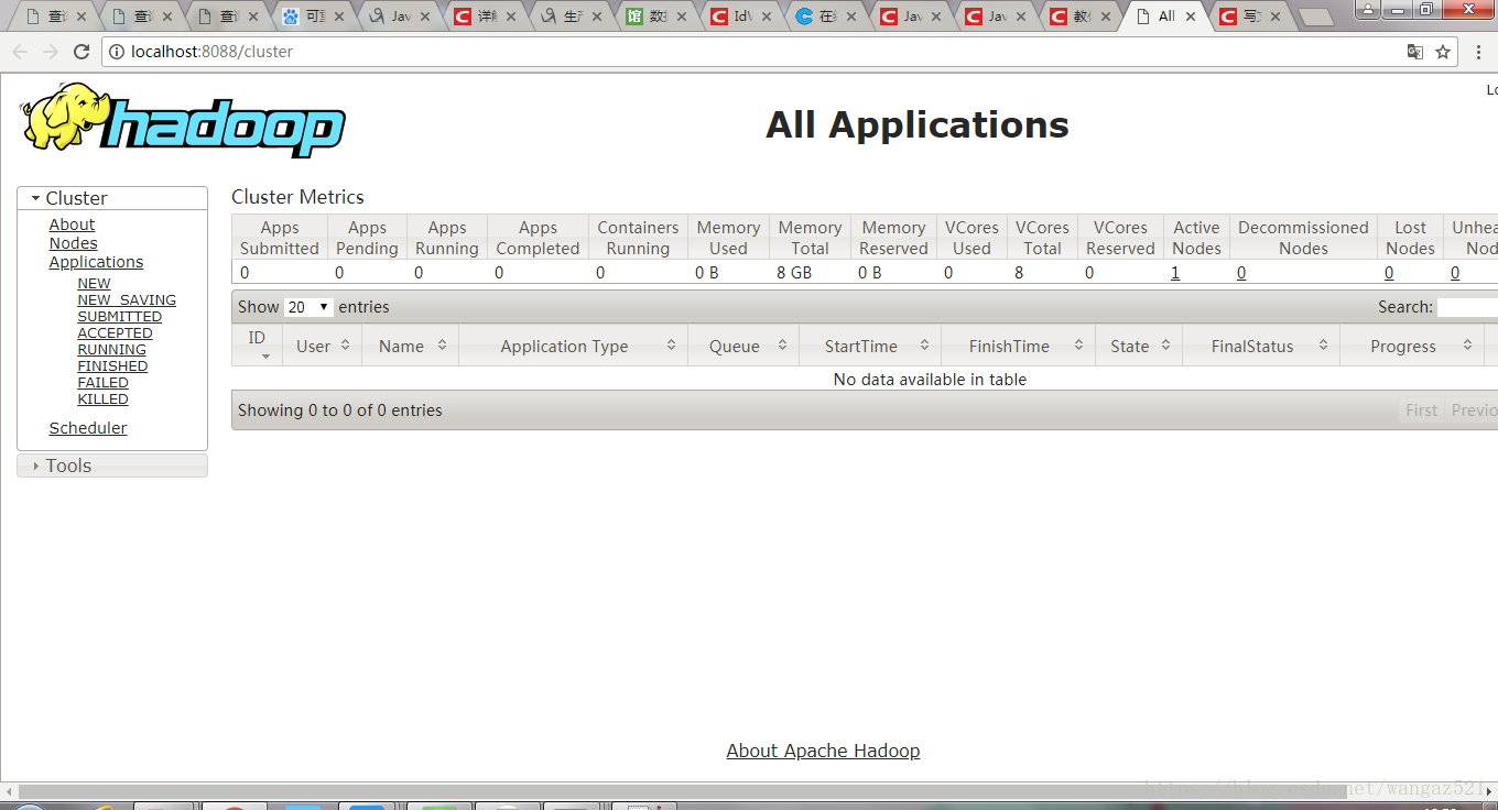 一. 资源管理图形用户界面:http://localhost:8088/;