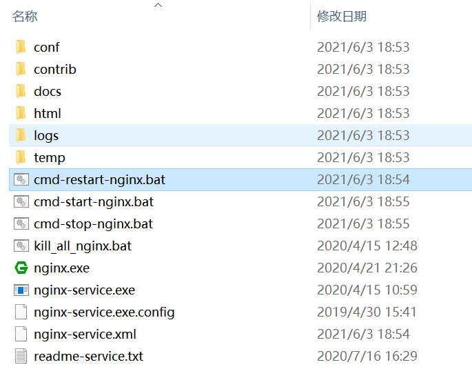 nginx-service.xml、cmd-restart-nginx.bat、cmd-start-nginx.bat、cmd-stop-nginx.bat