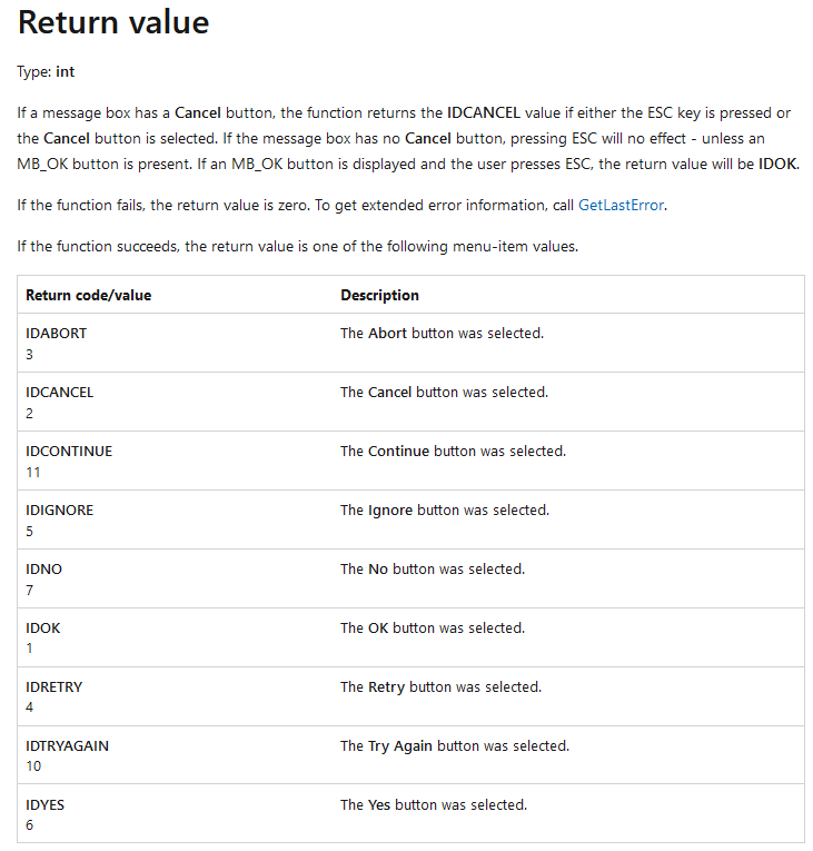 消息框返回值:单击按钮返回按钮,按钮为整数。
