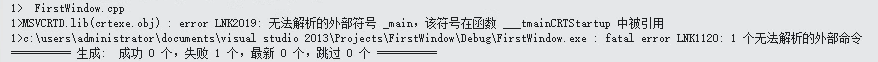 如果项目项目未认真纳入控制台项目,则会造成错误:建造Win32项目门户应是一个主要功能。