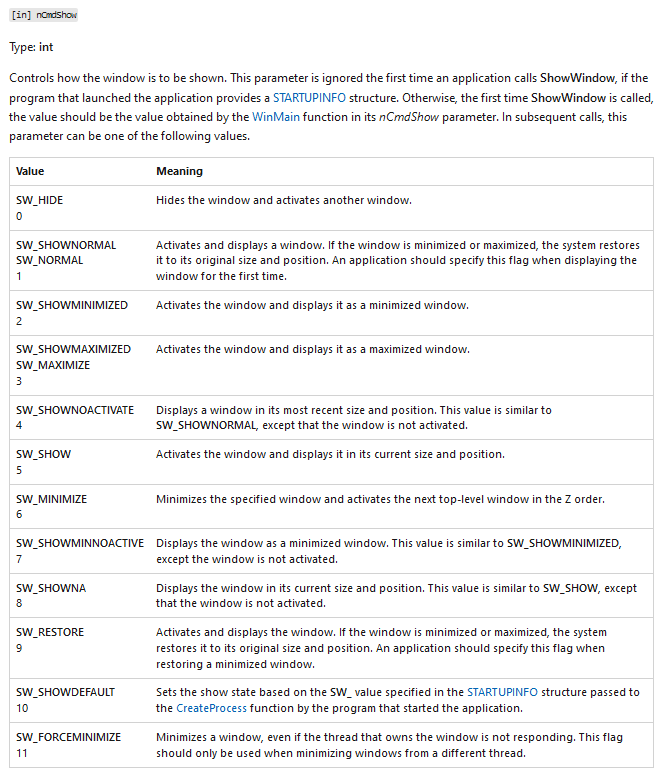 你是否就Winmain应该从左向右进入的四个参数达成了协议?从右往左入栈nCmdShow→ lpCmdLine→ hPreInstance→ hInstance