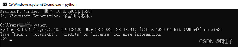 以 Win+r、 cmd 类型和 python 类型启动命令窗口 。