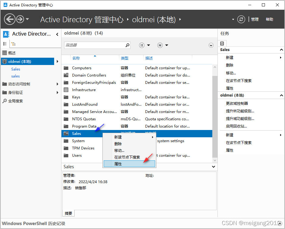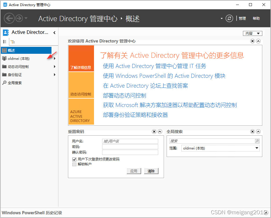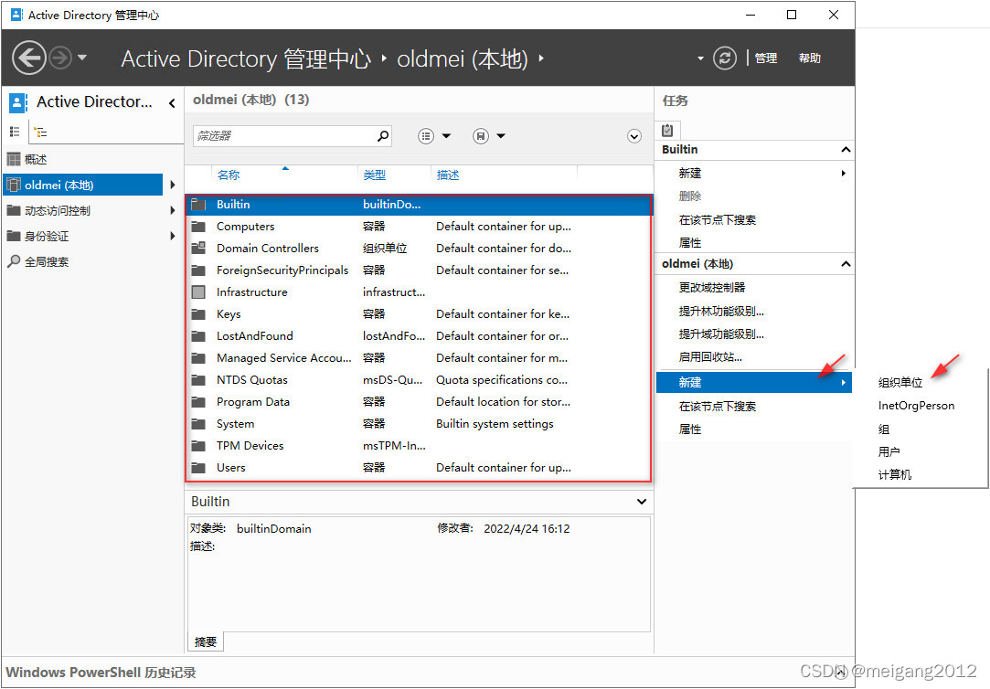 2 启动活动目录管理中心,并选择新的地域老旧。