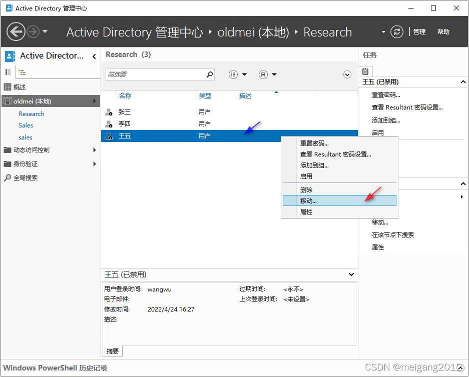 万一出现人员变动呢?万一王从研发部搬到销售部呢?在研发组织单位找到王五,单击右键,从菜单中选择[移 。