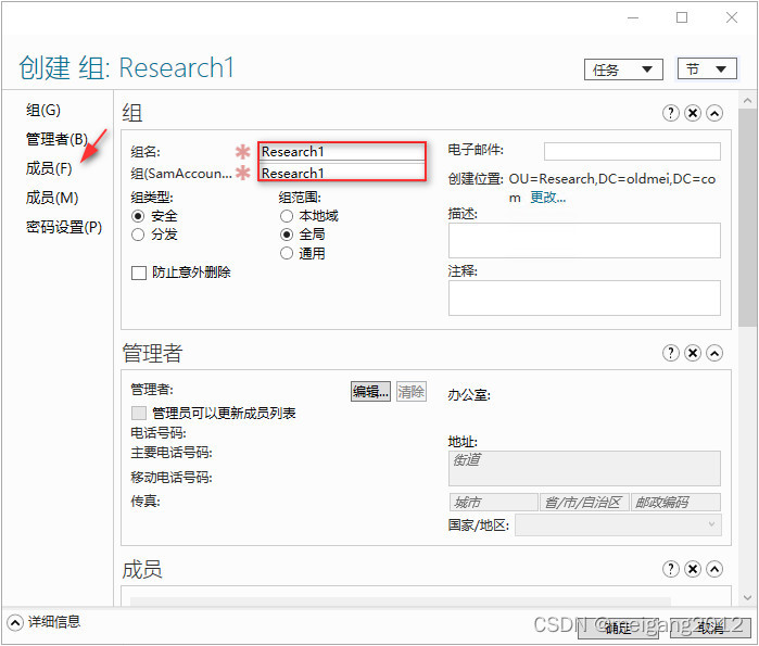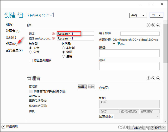 3 输入该组的名称并从左菜单中选择 [成员(M)] 。
