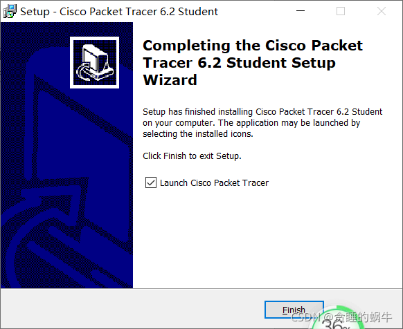 五. Cisco Packet Tracer软件已在计算机上成功安装,如下面界面所示,我们可通过点击界面下端的完成(完成)选项关闭安装界面打开程序。
