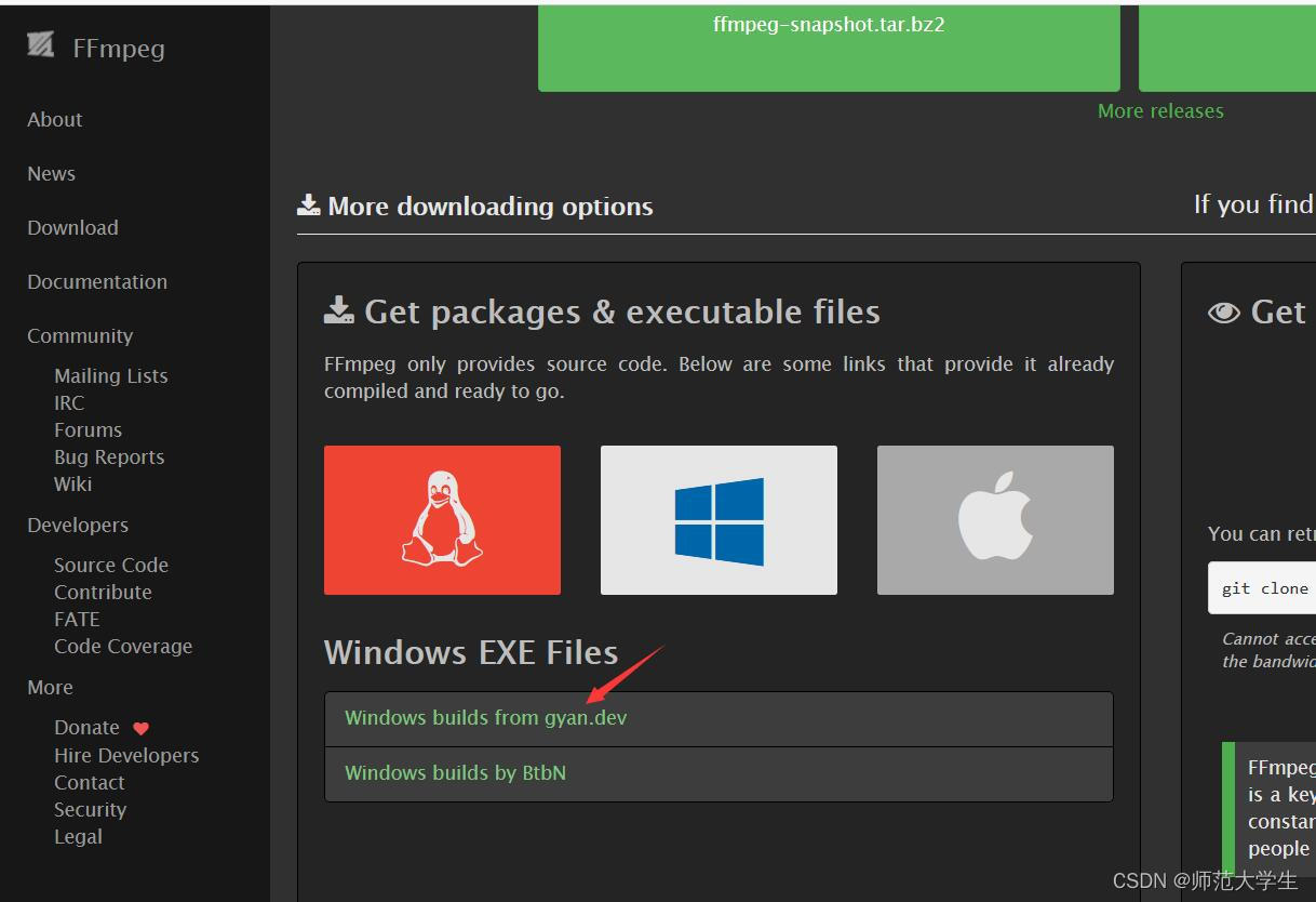 这就是我说的从上面下载 和Windows建筑的Gyan。