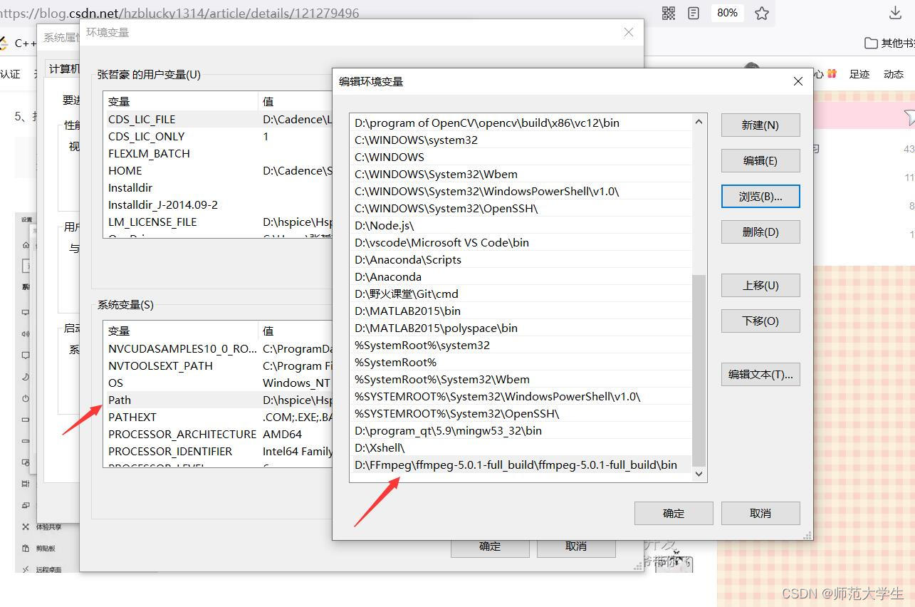 bin 文件必须在环境变量中注册。 必须指出, 新路径必须添加到路径中, 而不是直接添加到系统变量中 。