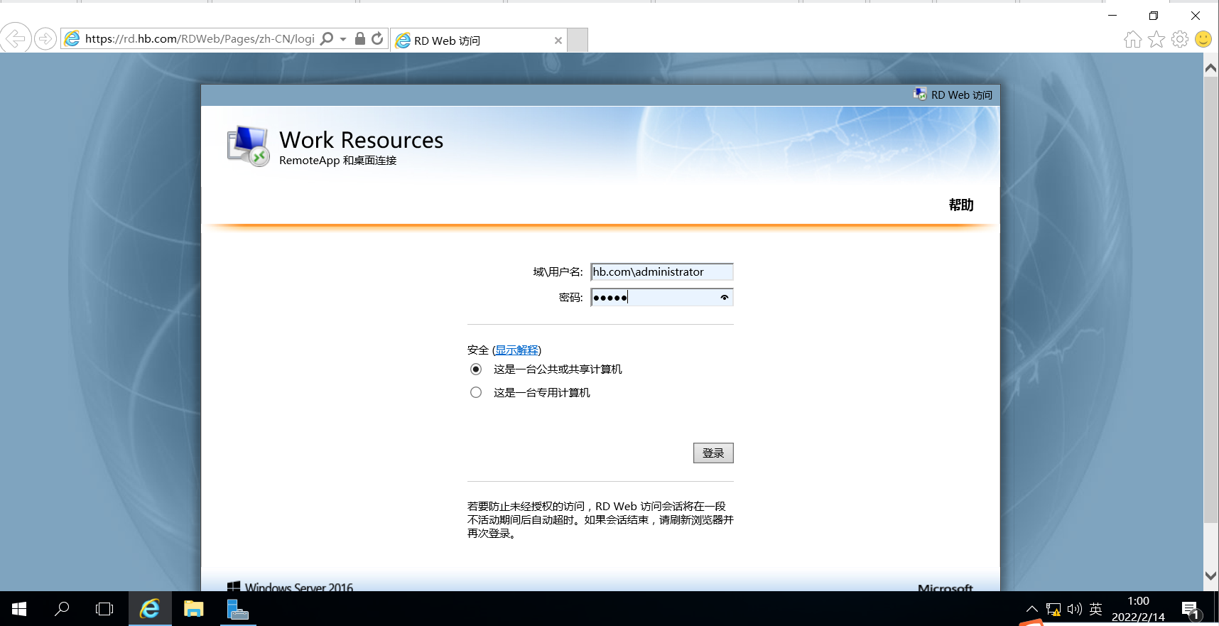 Windows Server 2016搭建RD,使用https加密远程访问网站