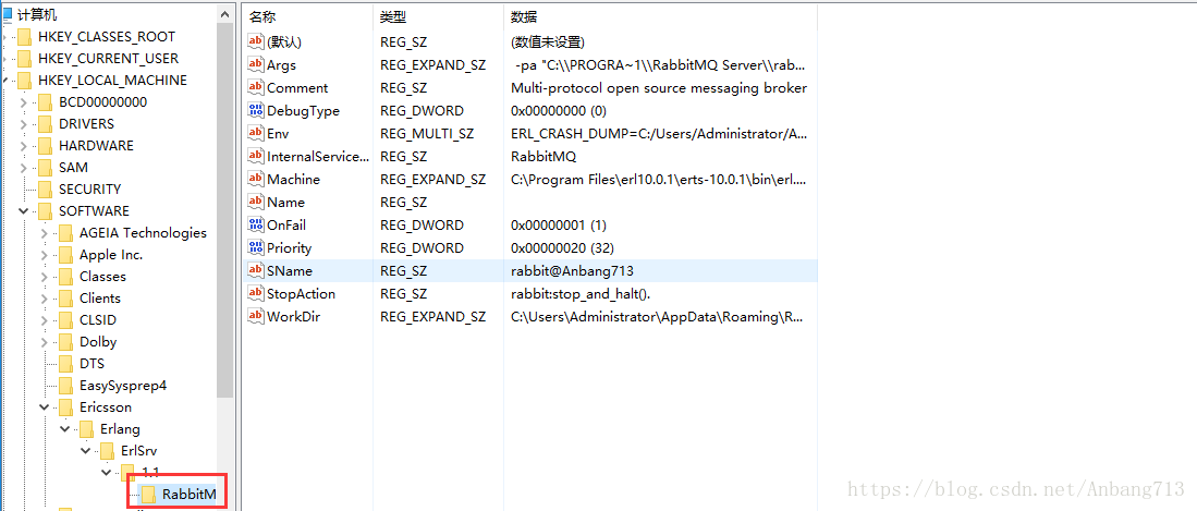 sc delete RabbitMQ - 删除注册表信息. 打开运行->regedit 找到RabbitMQ节点,删掉即可.