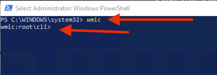 在“wmic:rootcli>”提示符下,键入以下命令: