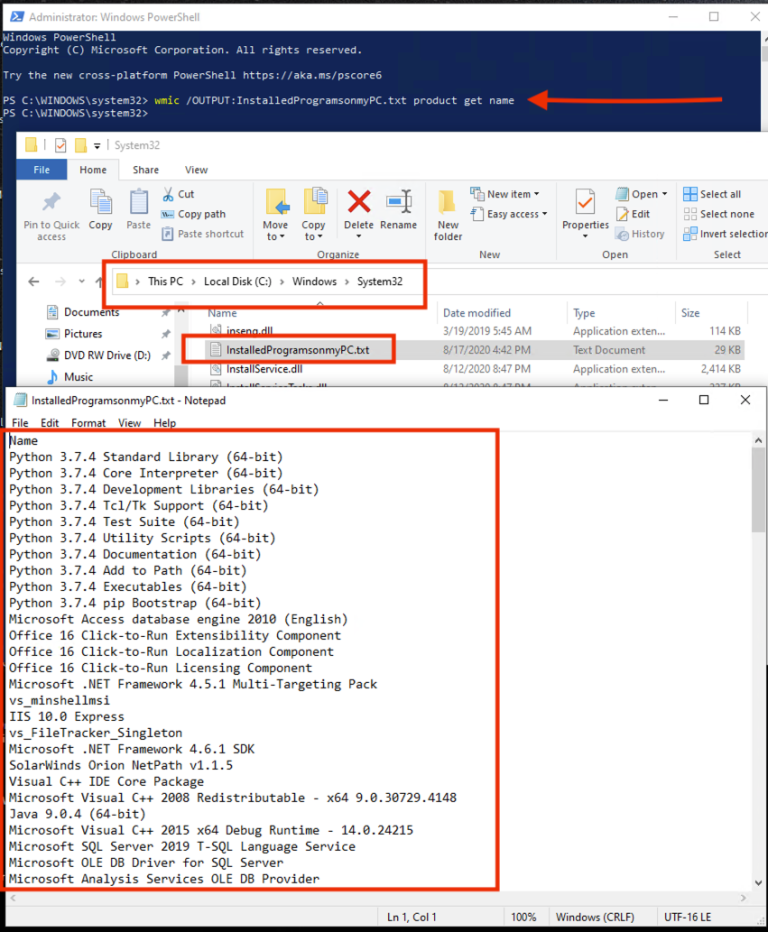 5: 使用 Windows 登记表检查登记表: 或者使用以下命令检查已安装应用程序列表。 这将查询登记表以查找系统上使用 MSI 安装程序安装的所有程序, 并将结果保存到文本文件 。