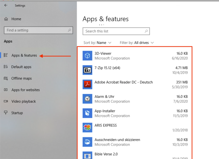 - 您应该能看到 Windows 中安装的应用程序列表 。