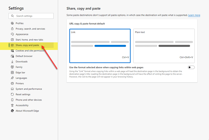 Windows Edge 浏览器的有关 URL 链接的复制粘贴