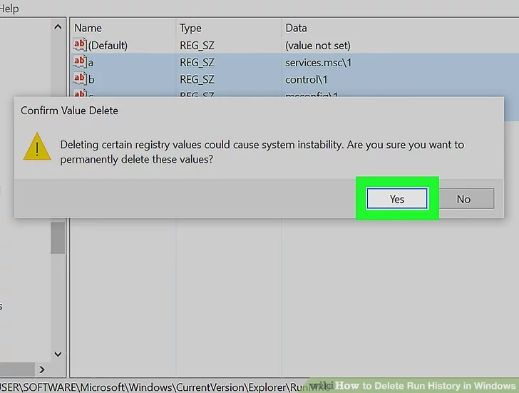 9是的, 这将删除您运行中的历史记录 。- 您可能会注意到一条错误消息, 上面写着“ 无法删除所有已注册的条目 ” ; 尽管如此, 您运行中的历史记录下次访问时将会被删除 。