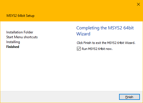 3.When done, tickRun MSYS2 now.