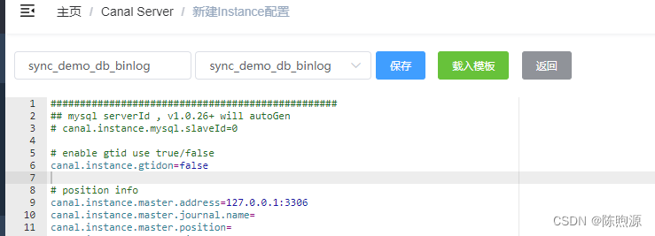 1.在admin平台,点击举个例子,设置instance名,配置binlog 的mysql 连接信息并保存