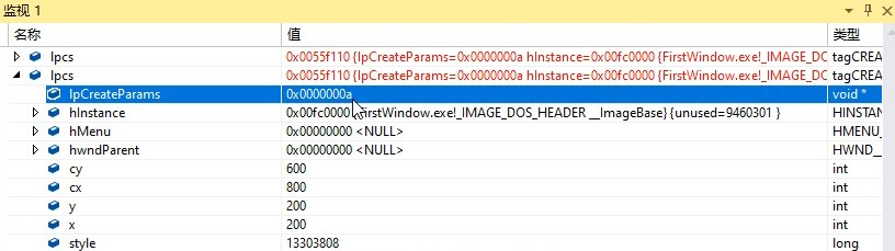 CreateWindow 的最后一个参数 lParam, 内型, 强制转换为指针类型