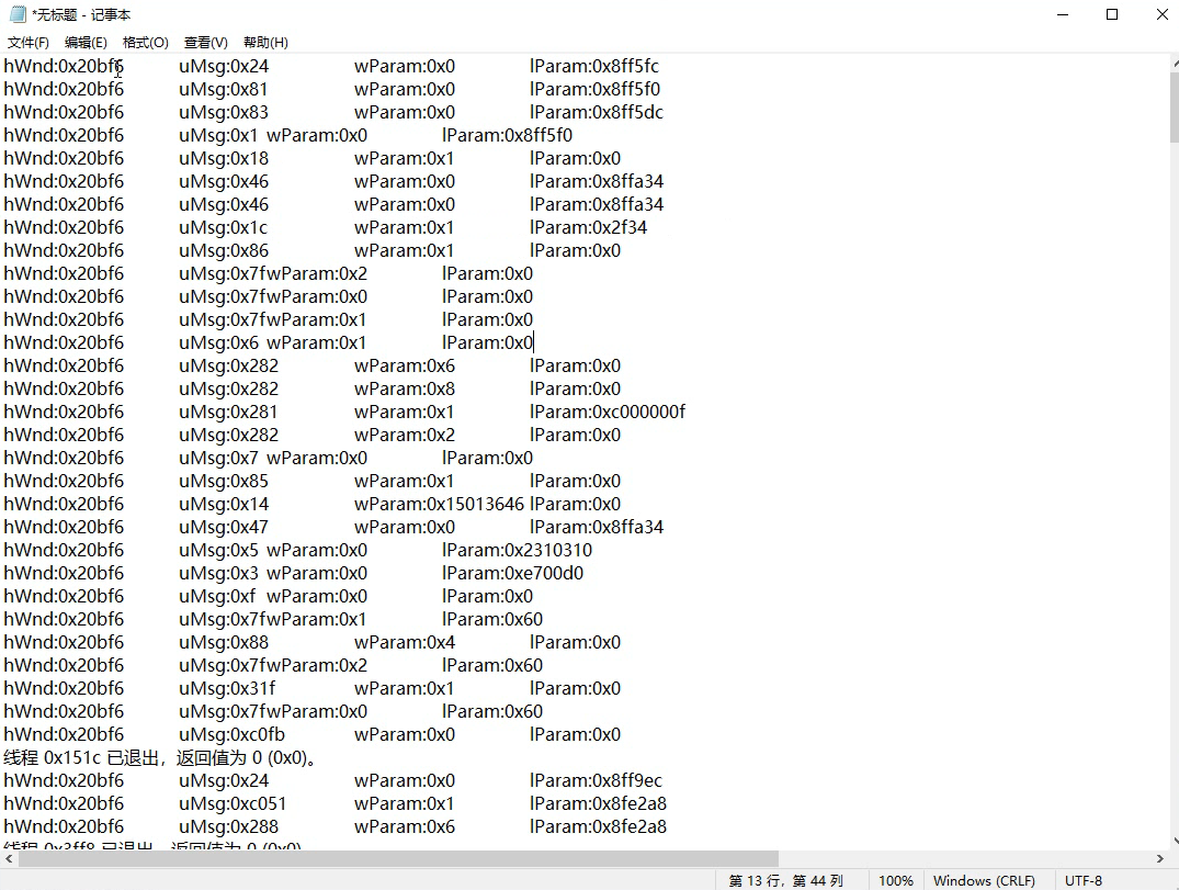 将在窗口出现之前提供信件, WindowsProc 函数将被引用, 并多次生成调试信息 。