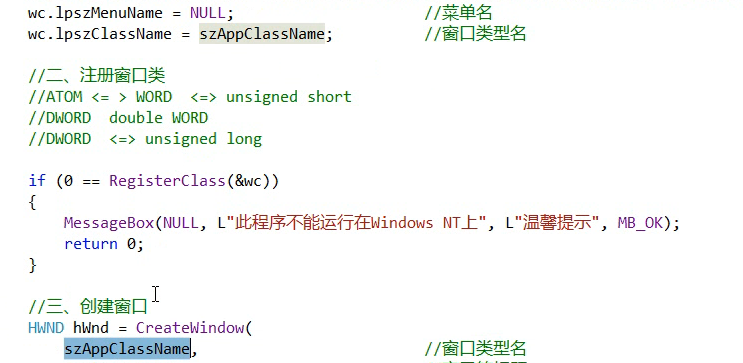 为注册的第一和第二步创建窗口类型名称; 否则, 窗口将不会创建 。
