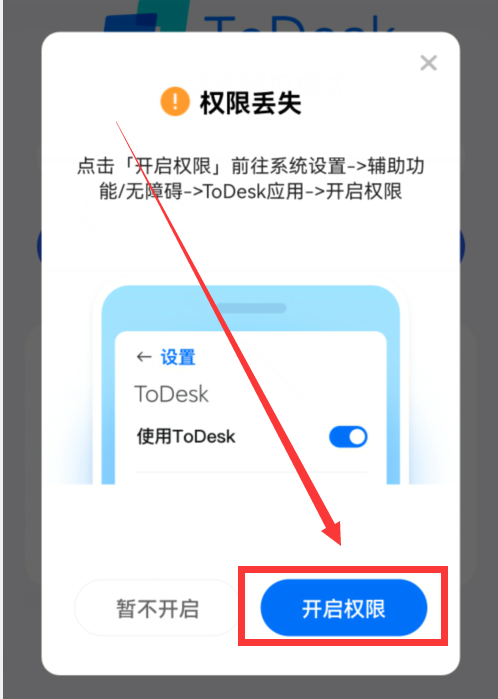 打开ToDesk 选项右侧的开关并打开蓝色(见下文插图) 。 第二部电话现已配置 。