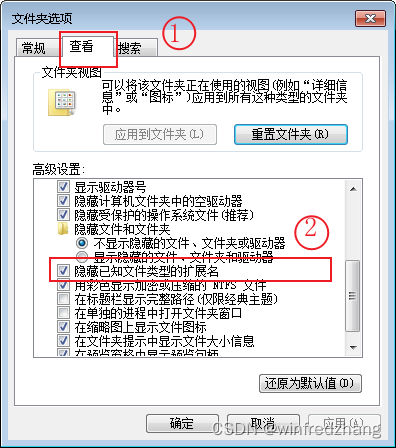 3. 从标签中删除选中的扩展名, 以隐藏已知的文件类型 。"