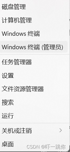 (1) 装有管理员证书的Windows PowerShell发射(Win11),右键点击开放菜单并选择Windows终端(管理员)。