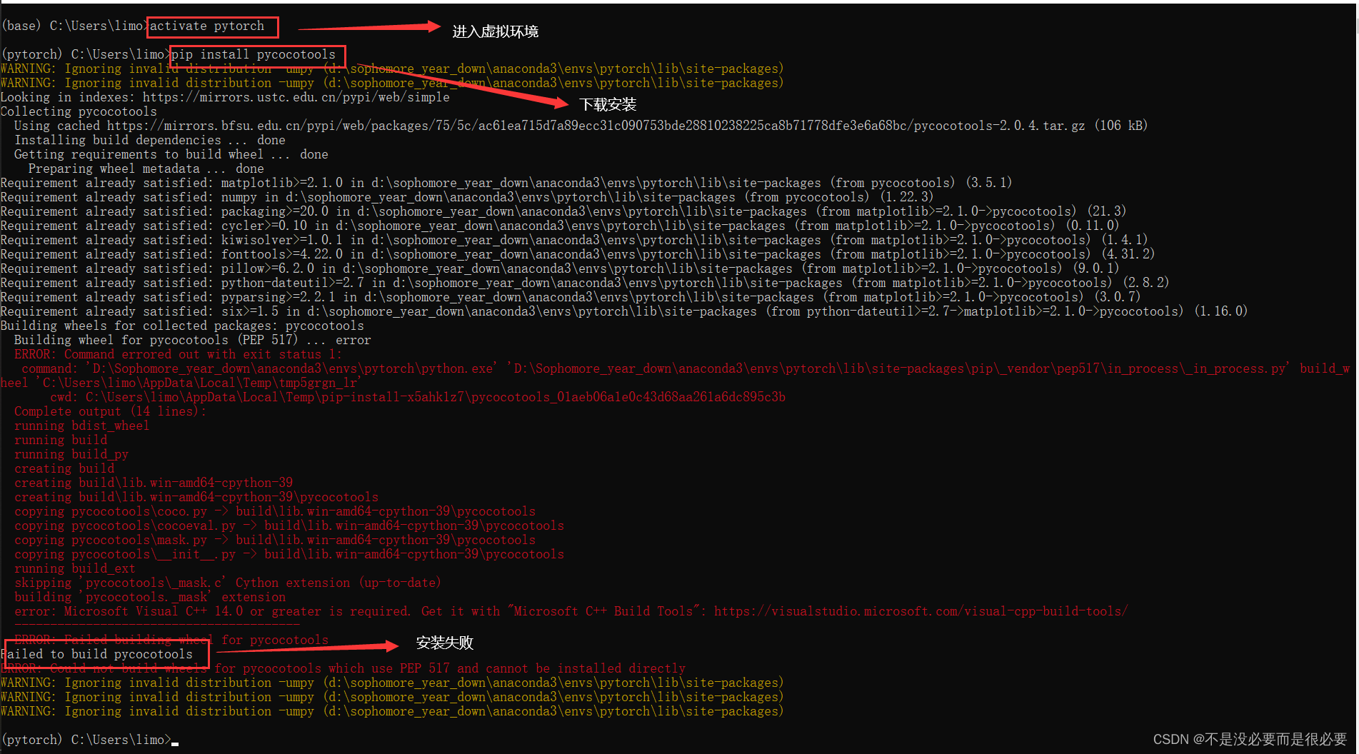 安装在将 pip 安装 pycotools 安装到终端后失败 。