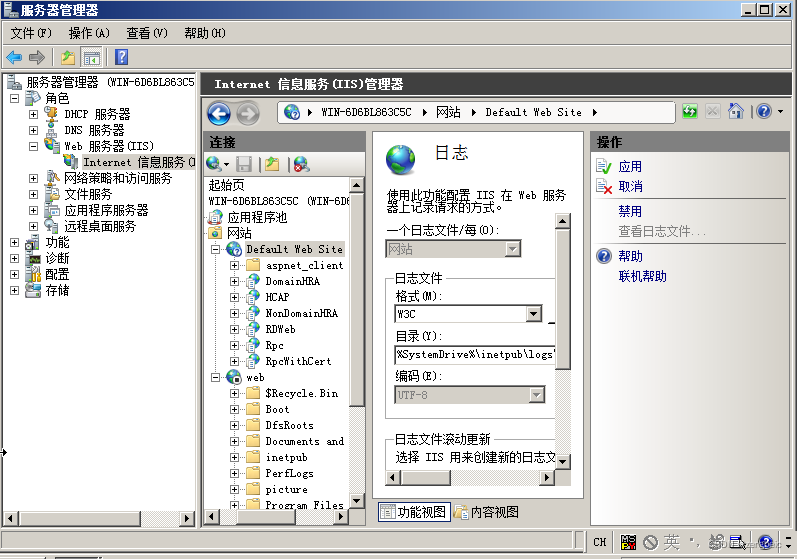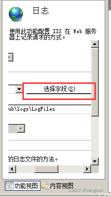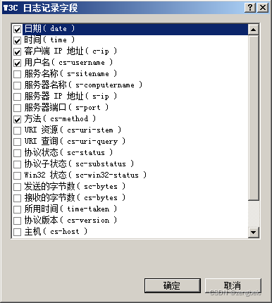 路径:打开 IIS 管理器, 浏览到网站, 选择 [默认网站], 定位 [列表], 格式 W3C, 然后选择 [选择字段] 。