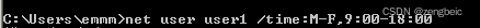 在办公时间(上午9时至下午5时,星期一至星期五)专门设置用户1,并配置界面屏幕用户1登录时间。