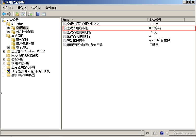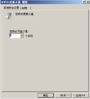 最小密码长度为八个字符,且为界面截图指定了最小密码长度属性;