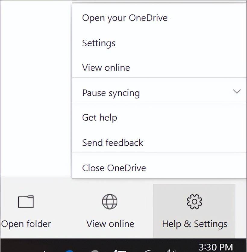 在 Windows 任务栏通知区域中,选择一个白色或蓝色 OneDrive 云符号。