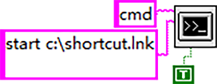 这将显示带有命令建议的字符 。然后,快速跟踪指令将运行程序。如果您不想显示命令提示字符,请取消选中框。系统 Exec VI 运行最小化输入可以设置为 True 。 start <path to the shortcut inMS-DOS format>start c:windowsdesktopshort.lnk