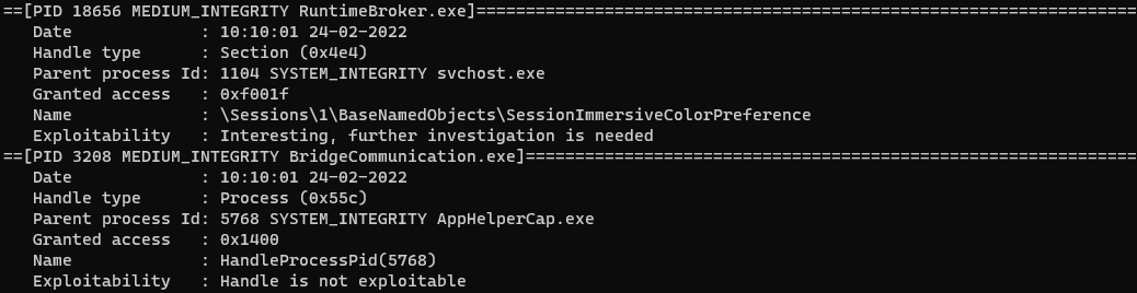 它可以用来在渗透实验期间探测新的LPE孔,或者仅仅作为一种新的研究程序。 目前,有人支持利用(自动)过程泄漏来制造新的任意过程(cmd默认 ) 。