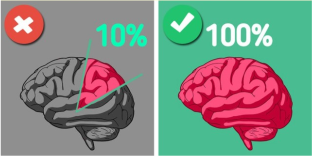 第一,我们没有把10%的时间 花在大脑里。