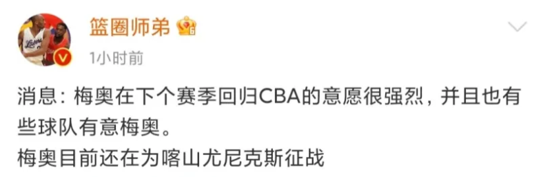 俄罗斯竞争结束后马约已表示,他希望重返CBA联盟。实际上,鉴于他目前的健康状况,其中有几个不适合在更具竞争力的俄罗斯一级竞争。对于他来说,CBA锦标赛是一个更可取的选择。据报导,一些小型CA小组对Mayo仍很感兴趣。希望他能为团队的预测出力还有一些出色的团队。预计Mayo将签署为第三批外国援助接受者。整体来看,另一方面,玛雅的年龄已经太高了。另一方面,在CBA锦标赛中找工作要简单得多。下一季我们很可能会回到CBA!