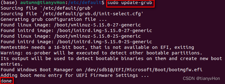 - 在终端中使用以下命令来更新设置, 输出将在更新完成后导出 。