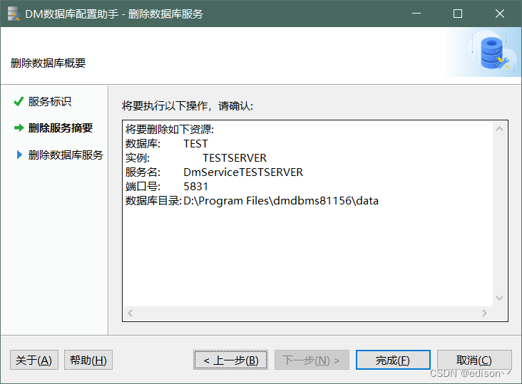 4删除数据库服务