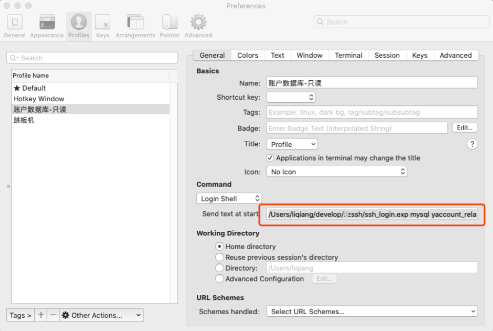 对于这一快速降落的基本程序,Iterm2无疑会大有帮助。只需要在将脚本配置到iTerm2->Preferences->Profiles->General中的Command输入框中,既可以是单行命令,这可能是一个贝壳脚本。
