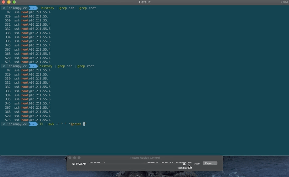 Term2 的另一个杀手是重播。 您不仅可以读取剪贴板的历史, 还可以像视频一样重播窗口的历史!