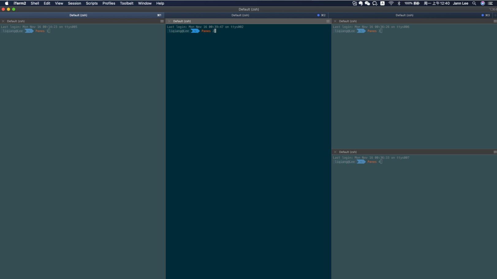 当然, 窗口可以随意分割! 与原始的 Mac 终端不同, iTerm2 允许任意分割和创建窗口 。