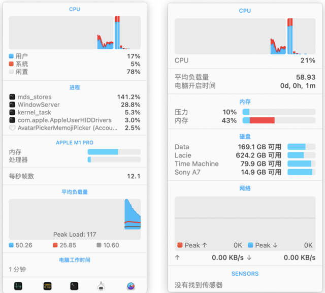 共同 CPU、内存、硬盘等通用 CPU、内存、硬盘等可在顶端菜单栏中永久显示。