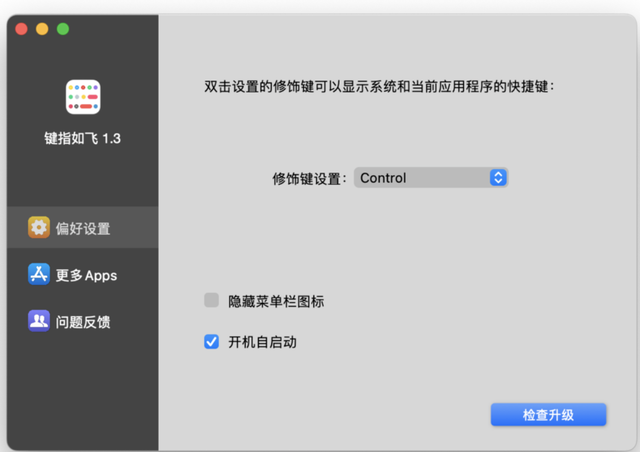 修饰键默认设置为命令;您可以修改调整并双击退出界面。