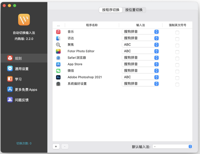 于是我搬到了自定义的软件, 转换输入方法自动跳动到自定义的软件, 自动转换输入方法。