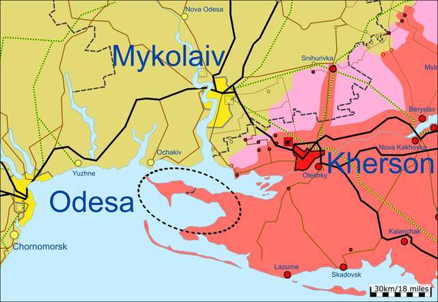 在南部战场上,俄军已经控制了赫尔曼半岛的西南,这隔离了尼科拉耶夫的入口和黑海,这意味着俄军已经完全封锁了尼科拉耶夫的入口。