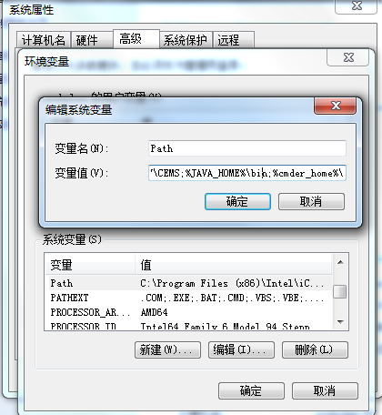 2.修改系统变量路径,添加最后的变量值: ;%cmder_home%
