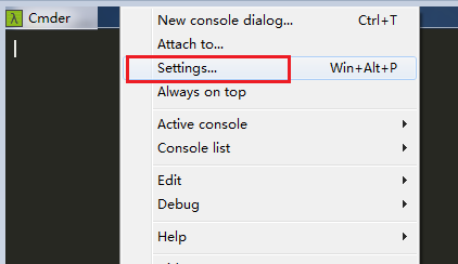 您可以打开cmder的控制台界面,单击对话框,右击菜单中的设置,并设置菜单为中文。