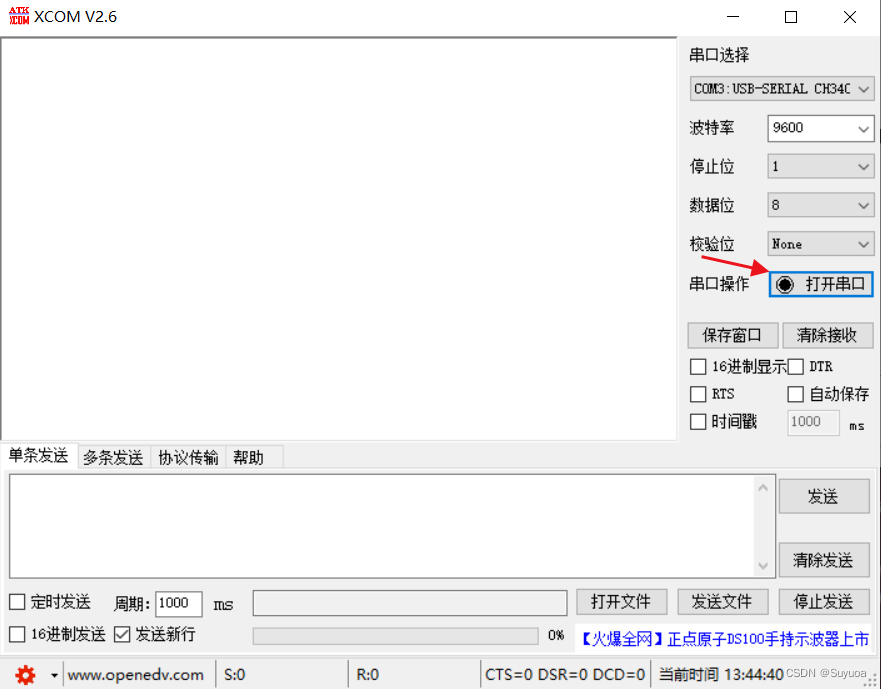 打开后,如果只有一个序列输入是自动选择的,那么我们单击打开序列
