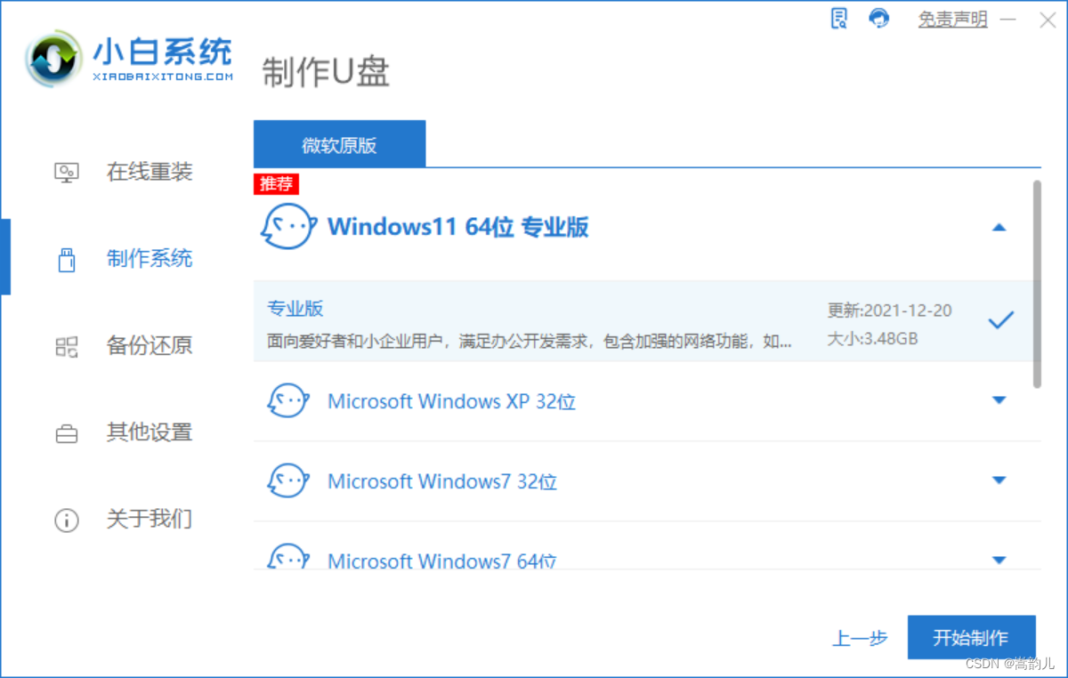 步骤1:将准备好的U磁盘插入您的电脑,用一个小白色键打开恢复系统,然后单击“制造U磁盘”。